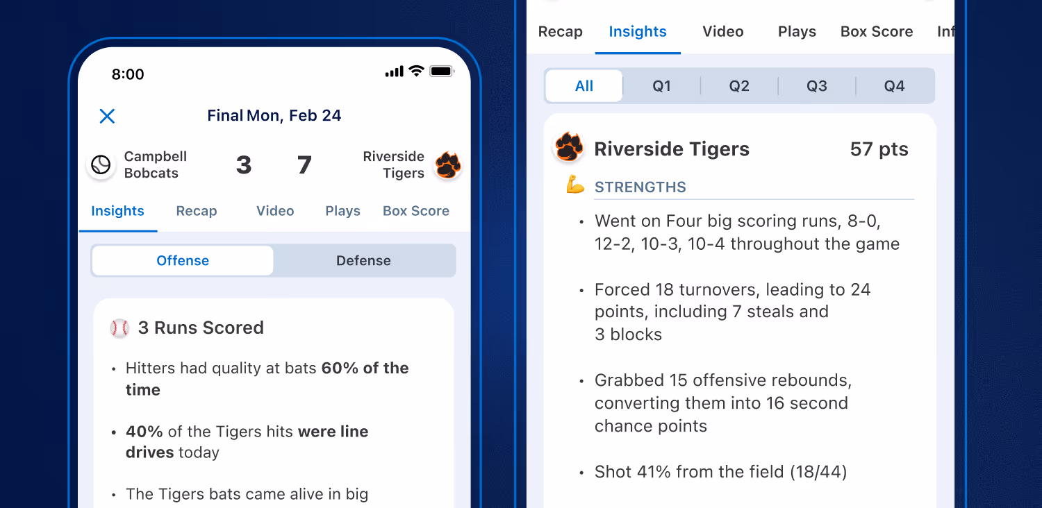 At GameChanger, we know that coaching doesn’t stop when the final whistle blows. The real growth happens after the game, when coaches review performance, identify areas for improvements, and plan the next practice. That’s why we’re excited to introduce the new Insights tab, designed to help coaches and staff save time while turning game data into strategies that drive team improvement.
